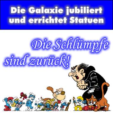 Die Superintelligenz SCHLUMPF interessierte sich zwar an und für sich nicht für solchen Firlefanz, aber da sie gerade vor Ort war, entschlossen sich die Schlümpfe wieder körperliche Gestalt anzunehmen. Nachdem das Herumfliegen durch den Kosmos auf die Dauer auch langweilig geworden war, gründeten sie Schlumpfhausen neu, um mit Hilfe vieler treuer Nichtschlümpfe dem Blau endlich wieder zu voller Geltung zu verhelfen. Der designierte neue Anführer der Schlümpfe, Chillerschlumpf, antwortete auf die Frage nach den Zielen des neuen Schlumpfhausens: "Das schlumpfübliche eben. Universale Dominanz und Anerkennung als unumschlumpft stärkste Macht im Kosmos." Die neue PILZ wird sie auf dem laufenden halten.