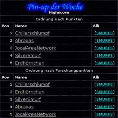 So schlumpften sich mehrere Kampfschlumpfstaffeln des SMURF-Clusters über der neuen Kolonie ein, um praxisnahe Qualitätsschlumpfungen der eingeschlumpften Xtreme-Hyper- Mega-High-Schlumpftech-Komponenten zu erschlumpfen. Und tatsächlich, ohne Mühe durchschlumpften die Schiffe die planetaren Perimeter und luden ihre unschlumpfigen Mitbringsel auf der noch gar nicht so blauen Planetenoberfläche ab - erst nach Abschluss der Schlumpfmanöver wurde die Atmosphäre mit den typischen Blaualgen verschlumpft um den Terraschlumpfungsprozess in Gang zu schlumpfen. Trotz der beeinschlumpfenden Kraterlandschaften und den schlumpfigen großen heißen Pilzen schlumpften sich die Schlumpfkommandeure noch nicht zufrieden mit den statistischen Erschlumpfungen. So bedarf etwa das in den Schlumpflaboren auf Mexasphire entschlumpfte Tarnungskonzept trotz eines irrschlumpfig schlumpfigen Attraktivitätsbonus noch einer grundschlumpfigen Überschlumpfung. Schlumpfgeneral Donnerschlumpf hierzu: "Beim Abschlumpfen in die Atmospäre erschlumpfte sich der blaue Plüschbezug als nicht ausreichend hitzeabschlumpfend und fing regelschlumpfig Feuer, was die Effizienz der Schlumpfschifftarnung doch arg einschlumpfte. Die so entstandenen über den Himmel schlumpfenden Fackeln waren zwar furchteinschlumpfend anzuschlumpfen und wären daher im Kampfeinsatz schlumpfig einschlumpfbar; nur leider entschlumpft den verschmorten Polyesterpseudofellen auch ein signifikant unschlumpfiger Geruch, der jeglichen Tarnabsichten Hohn schlumpft. So entschlumpfte mir der hiesige Schlumpfgardenkommandant auf mein Lob für die gut geschlumpfte Leistung der Heimschlumpfmannschaft hin: Schlumpf, ich habe es gerochen, Schlumpf!" Ein Grund für die Forscherschlümpfe auf Mexasphire, das Konzept schnellstschlumpfend weiterzuentschlumpfen. So schlumpft man neuesten Meldungen zuschlumpfe, dass jeder Tarnplüsch in Zukunft durch einen speziell entschlumpften Weichspülvorgang derart flauschig geschlumpft werden wird, dass sich die Reibungshitze in der Atmosphäre unter dem kritischen Bereich einschlumpfen wird. Wir schlumpfen uns schon darauf, nächste Woche von zahlreichen Feldversuchen auf unschlumpfigem Territorium beschlumpfen zu können, was für diese Ausgabe leider noch nicht möglich war - der Rest des Universums ist schließlich noch in der Noobschutz-Singularität gefangen! ![]() |