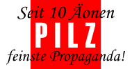 Natürlich wird das Ergebnis weder an der Gestaltung noch an der Ausrichtung der PILZ etwas ändern und wir werden uns hüten, irgendwelche Schlüsse daraus zu ziehen. Wir wollten nur mal gefragt haben. ![]() Außerdem gab es auch einige Glückwunschtelegramme. Innerfamiliärer Schleim kam von den Schlümpfen TheBlackMouse und Buddlschlumpf, sowie von [DST]klez und [DST]Warrior for Apocalypse. Aber auch nicht- blaue Freunde der Propaganda, wie [-AdB-]Niggo und [UFnW]Metastase, gaben ihren Senf dazu. [ICE]Drol schob uns in die Ecke des Diskordianismus, wogegen wir natürlich protestieren müs- sen: Unser Heil ist der Schlumpfismus und der läuft (wenigstens teilweise) in geord- neten Bahnen. Besonders freuen wir uns auch über die transuniversellen Grüße des Blauanhängers 2ndsky, ehemaliges Mitglied des SIBN in einer anderen Welt. Freut euch auf die PILZ 20, es kann nur noch Jahre dauern. ![]() |