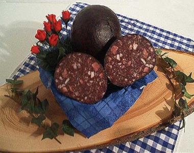 Zunächst braucht man Fleisch für so eine Blutwurst - der Vorteil bei der Blutwurst - da kann so ziemlich alles rein. Das ganze in einem großen Behälter durchkochen und schön würfeln. Nen bischen Speck dabei (vorher kurz anbraten) und mit etwas Salz, Pfeffer, Majoran und Thymian abschmecken. Dann das Blut dazu, alles gut durchmanschen und ab in die Därme damit. Anstechen, durchkochen, in Form pressen und dann 8 Tage an einem Schützenpanzer zum räuchern befestigen. Dann in Scheibchen schneiden und auf frisches Graubrot aufgeben, in Papier einschlagen und sicher am Gürtel verstauen - die nächste Vesper kann kommen...