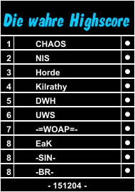 Da die Öffentlichkeit ja ziemlich statistikgeil ist, hat sich die PILZ entschlossen eine Alternative zum offiziellen Wirtschaftsran- king der Sirius Corp. zu ver- öffentlichen. Das sogenannte "Highscore"-System stellt näm- lich die Machtverhältnisse keineswegs dar, wie sie wirklich sind. Wir schon: