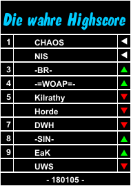 Erneut Plätze gutmachen konnte -BR- und auch -=WOAP=- hat sich wieder oben festgesetzt. Auffällig Plätze verloren hat vor allem UWS, aber auch Horde und DWH.