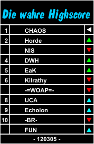 Discworldchaos versohlte bereits erfolgreich Gouald und Eak den Hintern. Kilrathy und Partner führten eine Kissenschlacht gegen IR, wurden jedoch überraschend in ihrem kindlichen Treiben unterbrochen, wodurch die IW-Gemeinde eine nie da gewesenen Heulerei ertragen durfte. Nun sind wir gespannt auf das Aufeinandertreffen der beiden.