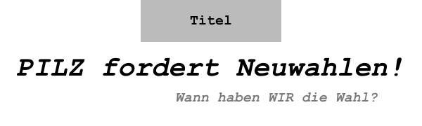 Es ist Zeit für den Wechsel, Vorfahrt für Arbeit, besser wir als die, der Ball ist rund und Hasi hat den längsten! Die PILZ geht mit gutem Beispiel voran und gründet noch in dieser Ausgabe die Grauen Manta, die Partei der alten aber rüstigen Gewaltherrscher. Lesen sie mehr dazu auf der letzten Seite.