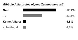 Es ist auffällig, dass ein Drittel der Befragten gerne noch mehr Zeitungen haben würde. Für "zu groß" hält die Medienlandschaft fast keiner. Dem Großteil ist es aber scheißegal, wie groß oder klein die Vielfalt ist, weil sie entweder alles oder gar nichts lesen.