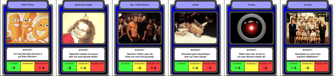 Boost-Karten können einen der Kampfwerte der Allianz auf Kosten eines anderen steigern. Ein "Radio-Mod" in der Allianz steigert das Ansehen, schadet aber der Stärke, weil sich der Mod nicht mehr um seinen Account kümmert. Ein "Tool" kommt der Stärke der Allianz zu Gute, verringert