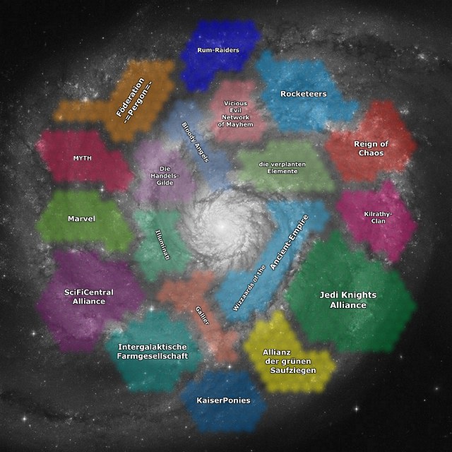 Auch das Gilde-Netzwerk mit GILDE, BASIS, ES und HANSE hat eine beeindruckende Größe angenommen. Ob die Meta auch eine militärische Macht darstellt oder nur einen Haufen von Scheckbuch-Diplomaten wird sich zeigen.